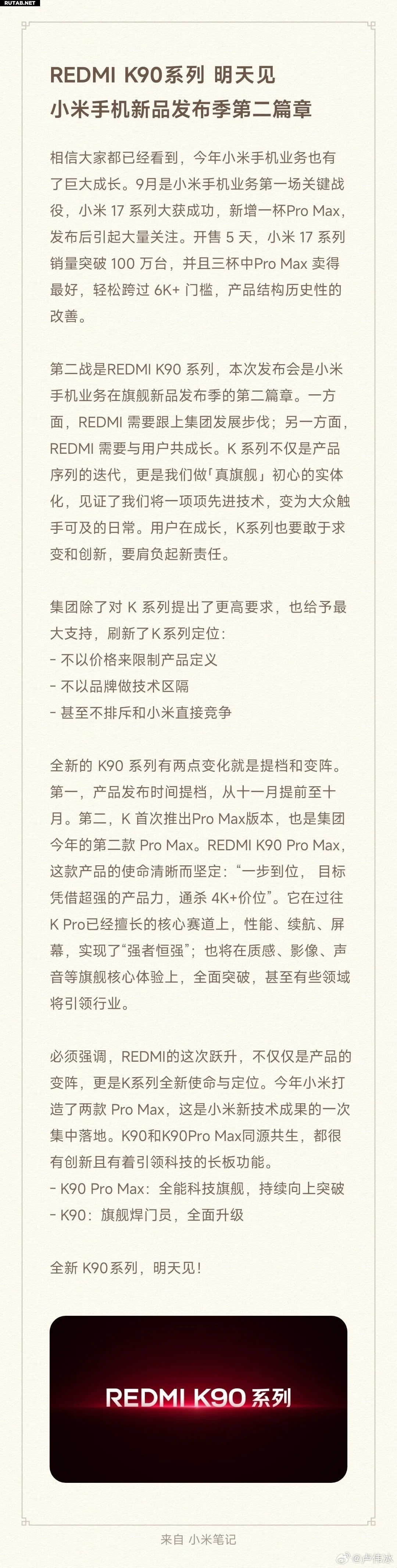 Миссия Redmi K90 Pro Max четко определена: «Сразу на высшем уровне, с целью доминировать в ценовом сегменте 4000+ юаней благодаря превосходным характеристикам продукта».