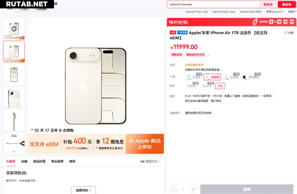 В настоящее время все цветовые варианты iPhone Air в фирменном магазине Apple на маркетплейсе JD.com также отображаются как недоступные к заказу.