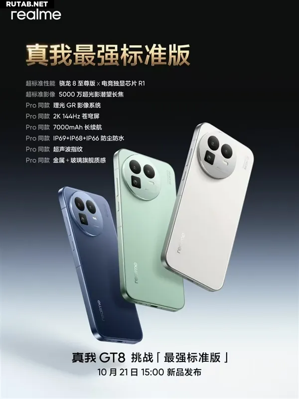 Согласно имеющейся информации, realme GT8 оснащен таким же 2K дисплеем с плоским экраном, как и Pro-версия, процессором Snapdragon 8至尊版, игровым сопроцессором R1, основной камерой на 50 Мп с перископическим объективом, аккумулятором емкостью 7000 мАч, поддержкой полной защиты от пыли и воды по стандартам IP69, IP68 и IP66, ультразвучным сканером отпечатков пальцев под экраном и металлической рамкой.