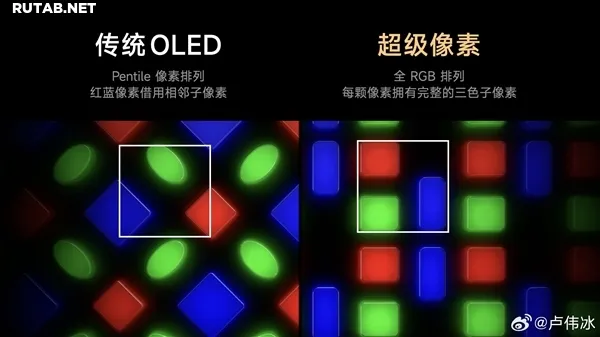 Технология Super Pixel (Real RGB) впервые для OLED-экранов решает дилемму между высоким значением PPI и низкой светоотдачей. Все RGB-пиксели располагаются независимо, что полностью исключает проблему «совместного использования пикселей» — каждый субпиксель может точно излучать свет.
