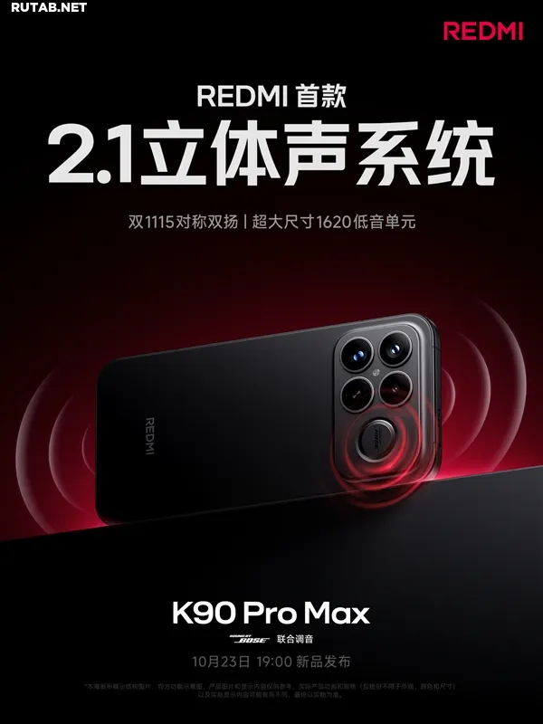 Согласно данным, Redmi K90 Pro Max оснащена стереосистемой 2.1 с двумя сверхлинейными динамиками и отдельным сабвуфером. Звук был настроен совместно специалистами Redmi и Bose, что обеспечило насыщенные басы, богатые детали, четкие голоса и открыло новую эру мобильного звука.