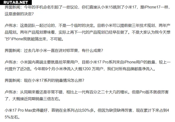 Лу Вэйбинь: Xiaomi 17 не копирует iPhone, в этом году к бренду присоединились 12 миллионов пользователей