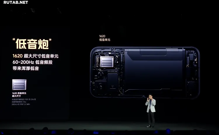 Сообщается, что 2.1-канальная стереосистема Redmi K90 Pro Max оснащена двумя сверхлинейными динамиками 1115F и низкочастотным динамиком увеличенного размера 1620 с площадью вибрации 250 мм², охватывающим низкочастотный диапазон 60-200 Гц для насыщенного баса.