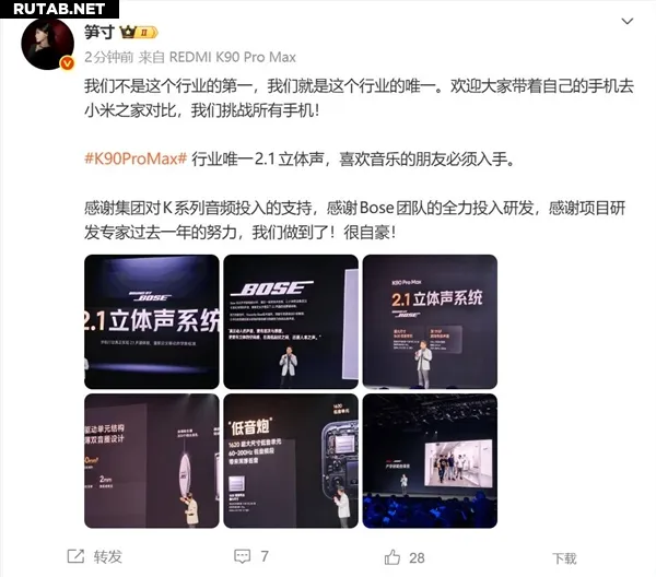 Менеджер по продукту Redmi заявил: «Мы не первые в этой отрасли — мы единственные. Приглашаем всех прийти со своими смартфонами в магазины Xiaomi для сравнения. Мы бросаем вызов всем телефонам — любителям музыки обязательно стоит приобрести K90 Pro Max.»