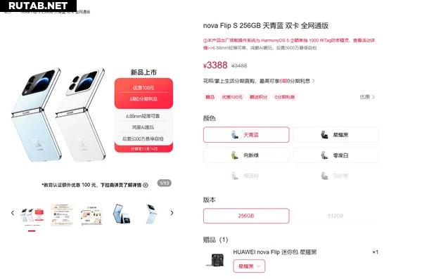 Сегодня состоялся официальный запуск Huawei nova Flip S — самого дешёвого смартфона компании со складным экраном. Устройство стартует по цене 3488 юаней, но с учётом скидки в 100 юаней начальная цена составляет 3388 юаней.