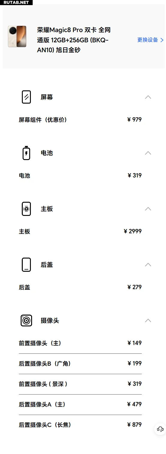 Самые дорогие в замене компоненты — экран и материнская плата. Стоимость экрана со скидкой составляет 979 юаней, а замена материнской платы обойдется от 2699 юаней.