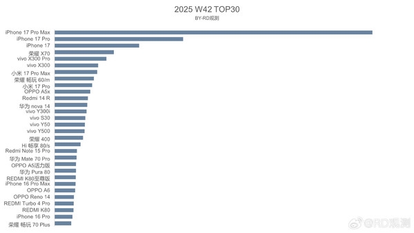 Согласно последним данным о продажах, обнародованным цифровыми блогерами, рейтинг TOP30 самых продаваемых смартфонов за 42-ю неделю 2025 года показал несколько интересных тенденций.