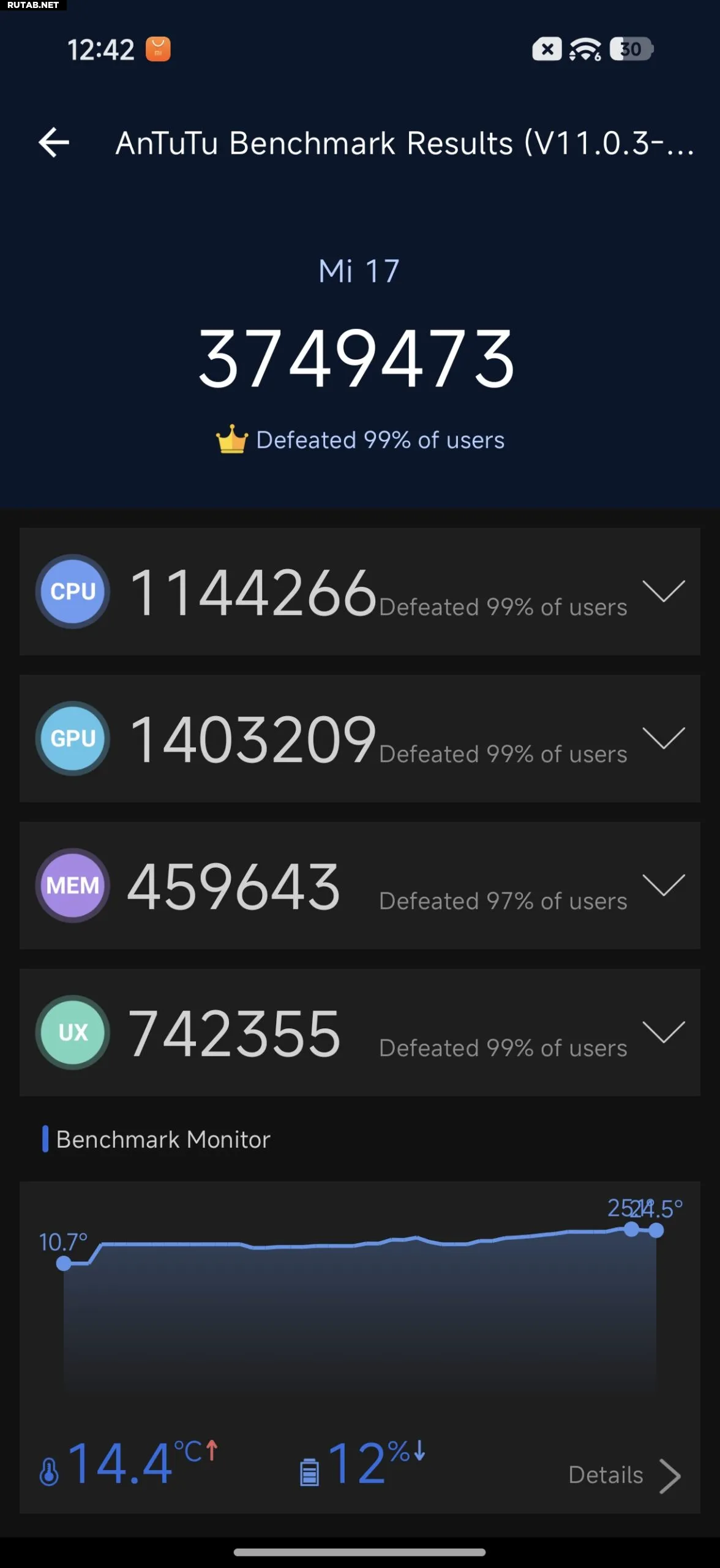 Xiaomi 17 оснащен аккумулятором емкостью 7000 мАч с поддержкой быстрой зарядки 100 Вт. Хотя начальная мощность заряда может достигать 75 Вт, большую часть времени она стабилизируется на уровне около 30 Вт.
