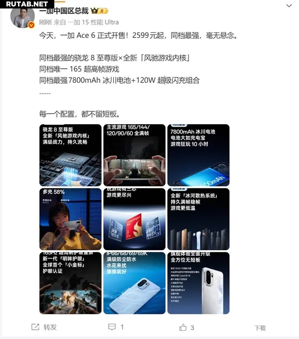 OnePlus Ace 6 официально поступил в продажу в Китае с начальной ценой 2599 юаней. Президент OnePlus China Ли Цзе заявил, что «OnePlus Ace 6 — бесспорно сильнейший в своем сегменте».