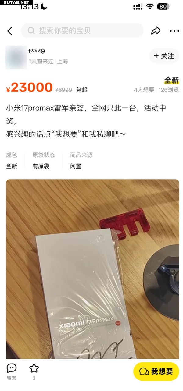 На площадке Xianyu продают Xiaomi 17 Pro Max с автографом Лэй Цзюня за 23 000 юаней