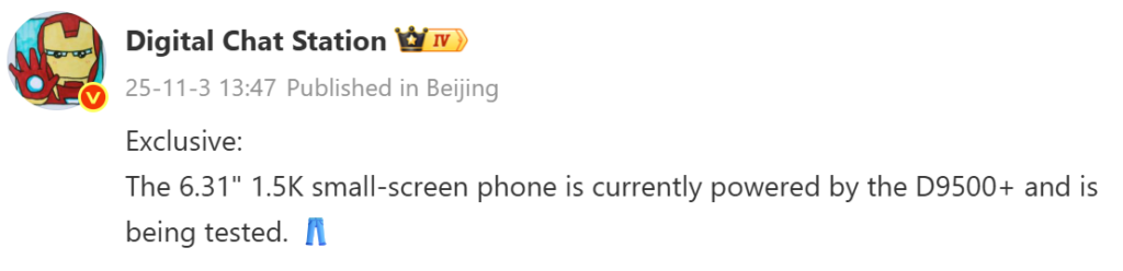 По данным инсайдера, iQOO 15 Mini с 6,31-дюймовым дисплеем сейчас проходит тестирование. Устройство работает на чипсете Dimensity 9500 Plus, который ещё официально не анонсирован.
