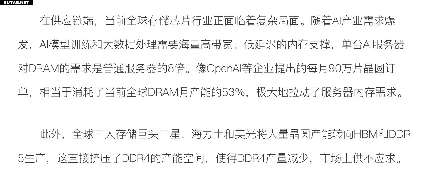 Развитие генеративного искусственного интеллекта, масштабное обучение моделей и логический вывод вызвали резкий рост спроса на высокоскоростную память (HBM). Производители перевели значительные мощности с производства DDR4 на HBM, что привело к дефициту потребительской DRAM. SK Hynix и Micron сократили циклы управления запасами до двух недель против отраслевого стандарта в восемь недель.