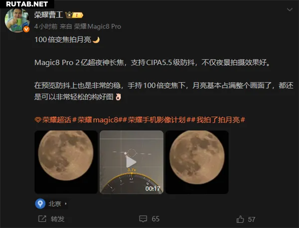 Honor Magic8 Pro показал возможности 100-кратного зума при съемке Луны