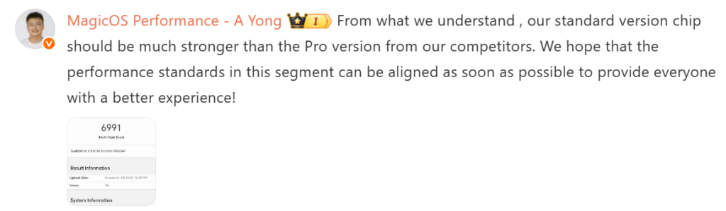 Подкрепляя эти слухи, инженер по оптимизации производительности Honor А Юн заявил, что чипсет в их стандартной модели (Honor 500) должен быть значительно мощнее, чем в Pro-версии у конкурента (имея в виду Oppo Reno 15 Pro).