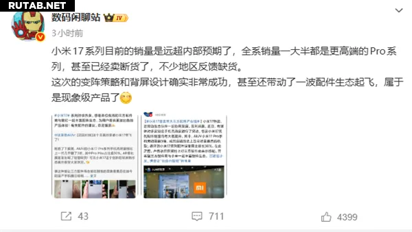 Успех серии Xiaomi 17 связывают с удачным редизайном и конструкцией задней панели, которые также положительно повлияли на развитие экосистемы аксессуаров. Серия Xiaomi 17, выпущенная в 2025 году, представляет собой флагманскую линейку на базе процессора Snapdragon 8 Gen 4 и демонстрирует стратегию компании по усилению позиций в премиальном сегменте.