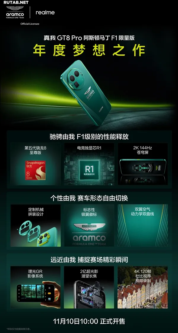 В плане комплектации Realme GT8 Pro Aston Martin F1 Edition получит 16 ГБ оперативной памяти и 1 ТБ встроенной памяти, остальные характеристики соответствуют базовой версии.