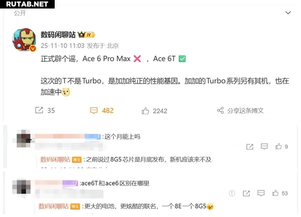 Однако, согласно информации от известного инсайдера Digital Chat Station, новый смартфон OnePlus с чипсетом Snapdragon 8 Gen5 получит название не Ace 6 Pro Max, а Ace 6T. Буква T в названии обозначает не Turbo, а отсылает к производительным генам OnePlus, при этом отдельная серия OnePlus Turbo уже находится в разработке.