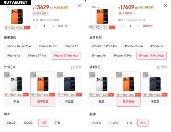 Разница в цене между версиями iPhone с разным объемом памяти всегда была самой большой среди производителей смартфонов. Например, в новейшем iPhone 17 Pro Max разница в цене только за память между версиями на 1 ТБ и 2 ТБ составляет 4000 юаней.