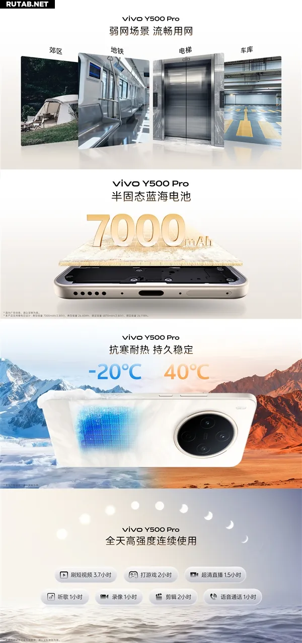 Аккумулятор Y500 Pro выполнен по технологии третьего поколения кремний-углеродного анода и полутвердотельной батареи. Плотность энергии достигает 837 Вт·ч/л, что позволило сохранить большую ёмкость при компактных размерах корпуса.