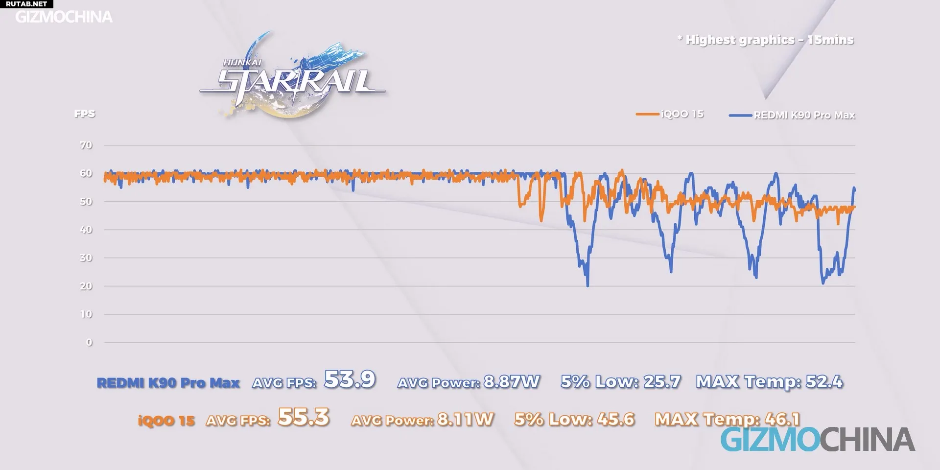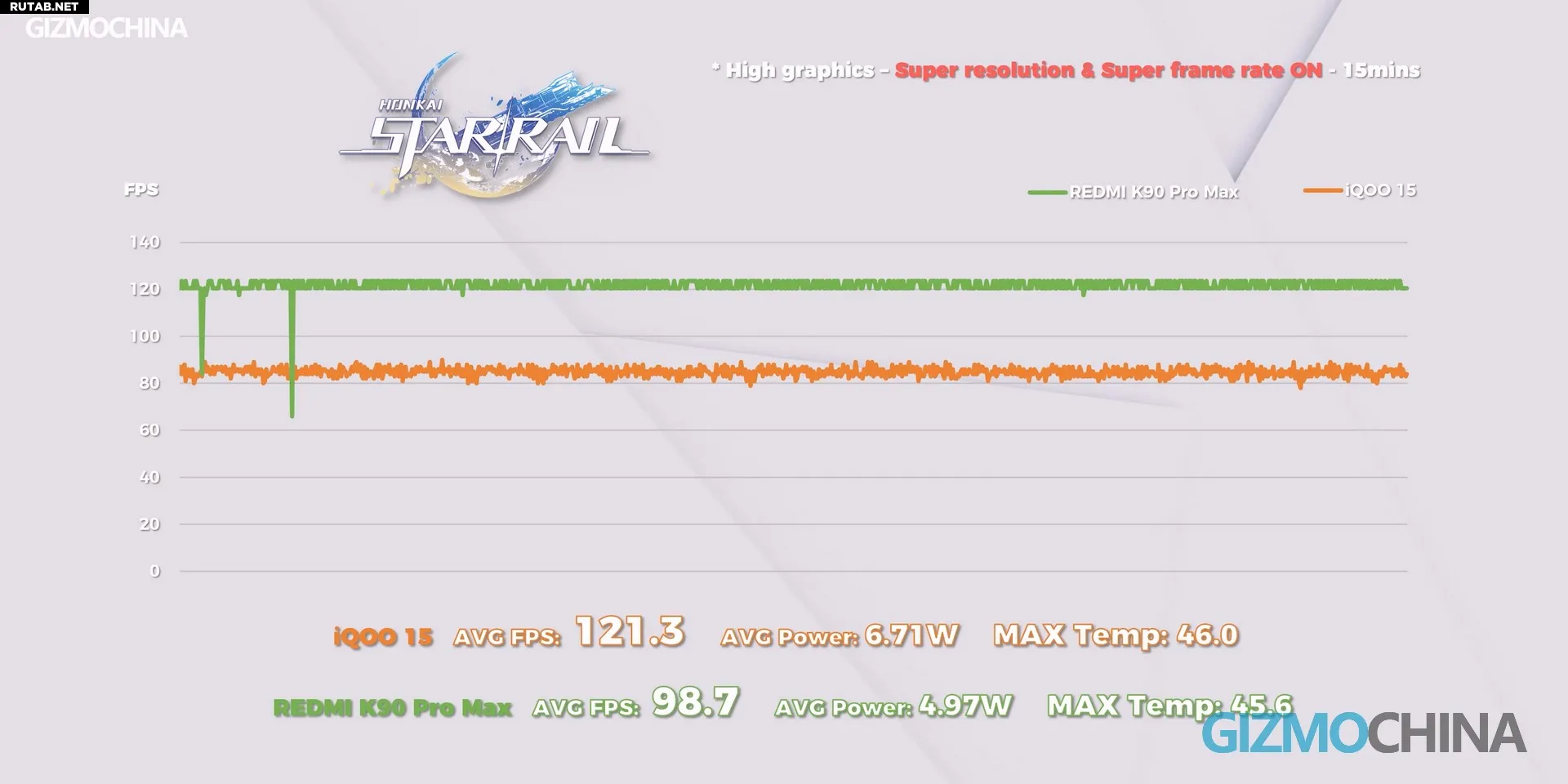 Производительность обеспечивается процессором Snapdragon 8 Elite Gen5 и игровым чипом Q3. Настройки агрессивные, но сдержанные: после 10 минут игры начинается троттлинг, но частота кадров плавно стабилизируется вокруг 45 FPS. Чип Q3 поддерживает супер-разрешение и трассировку лучей в двух играх, хотя по энергоэффективности уступает чипу D2 в Redmi K90 Pro Max.