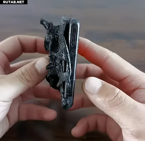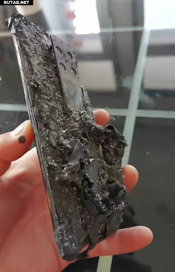 На опубликованных фотографиях видно, что задняя панель телефона пострадала особенно сильно — она почти полностью обуглена. Высокая температура также повредила экран, примерно треть которого неработоспособна.