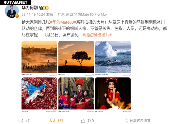 В числе опубликованных фотографий — снимки с камер моделей Mate 80 Pro, Mate 80 Pro Max и Mate 80 RS Ultimate Master Edition. На примере осенней листвы видно, что система камер Red Maple (红枫) демонстрирует превосходную цветопередачу, точно воспроизводя цвета даже в условиях сложного освещения.