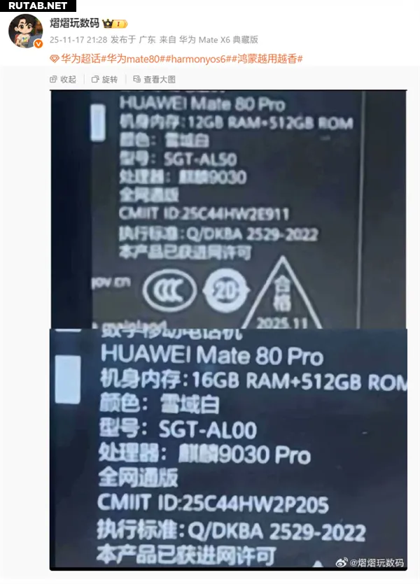 Информация с упаковки Huawei Mate 80 Pro указывает на наличие двух версий процессора: Kirin 9030 и Kirin 9030 Pro.