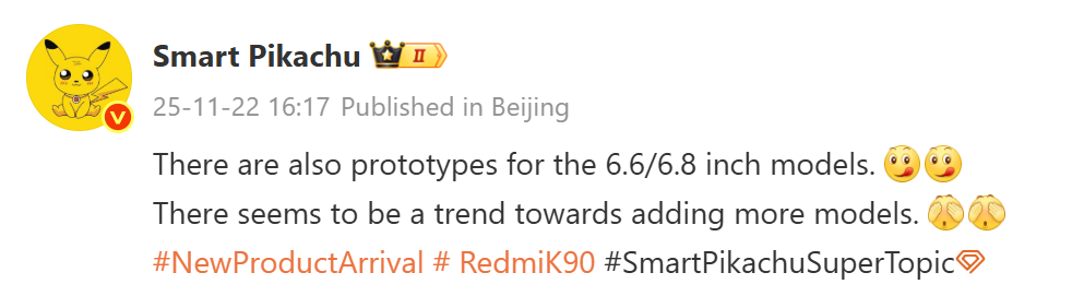 Компания Redmi уже представила в Китае смартфоны Redmi K90 и Redmi K90 Pro Max на чипсетах Snapdragon 8 серии. Новые данные от инсайдера Smart Pikachu указывают на то, что производитель планирует расширить серию K90. Он также раскрыл размеры экранов двух ожидаемых моделей.