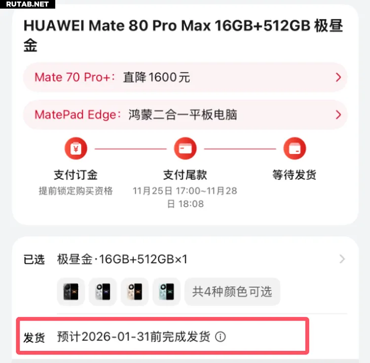 По данным инсайдеров, наибольшие объемы производства приходятся на стандартную модель Mate 80, в то время как поставки других версий будут более ограниченными, что и объясняет более ранние сроки доставки базовой версии.