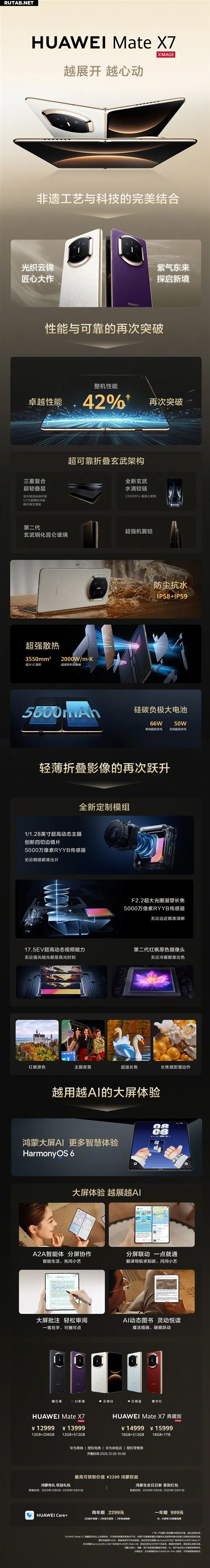 Параллельно Huawei выпустила коллекционное издание Mate X7 с комплектом стилуса. Эта версия стала первой на рынке с объемом оперативной памяти 20 ГБ и стоит 17599 юаней. Вся серия Mate X7 использует сверхнадежную складную конструкцию «Сюаньу» с защитой от пыли и воды по стандарту IP59/IP58, выдерживающую воздействие струй воды под высоким давлением.