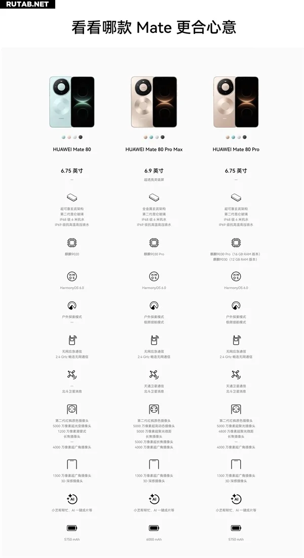 Особенностью линейки является то, что модель Mate 80 Pro доступна в двух вариантах процессоров: Kirin 9030 и Kirin 9030 Pro, которые соответствуют разным конфигурациям оперативной памяти.