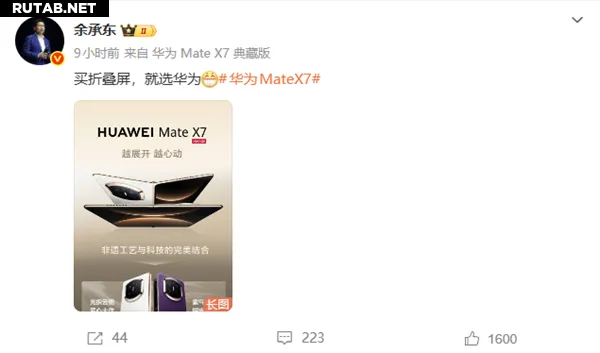После анонса нового устройства председатель правления потребительского бизнеса Huawei (Terminal BG) и исполнительный директор компании Юй Чэндун заявил в Weibo: «Покупайте складной смартфон — выбирайте Huawei Mate X7».