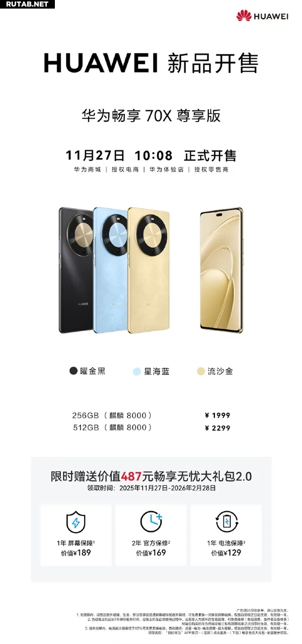 Сегодня в продажу поступил смартфон Huawei Enjoy 70X Premium Edition. Устройство предлагается в двух конфигурациях: 8 ГБ оперативной памяти + 256 ГБ встроенной памяти за 1999 юаней и 8 ГБ + 512 ГБ за 2299 юаней.