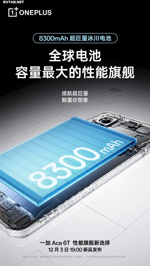 Президент OnePlus China Ли Цзе также анонсировал, что OnePlus Ace 6T станет первым смартфоном с аккумулятором Glacier Battery ёмкостью 8300 мА·ч. Это сделает его самым ёмким аккумулятором среди флагманских моделей на рынке и откроет эру смартфонов с батареями более 8000 мА·ч.