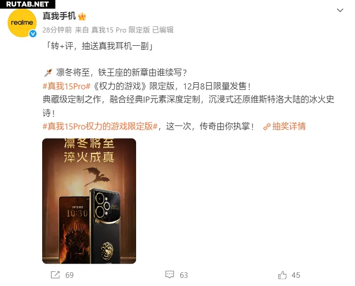Realme представила смартфон 15 Pro в лимитированной версии по мотивам «Игры престолов»