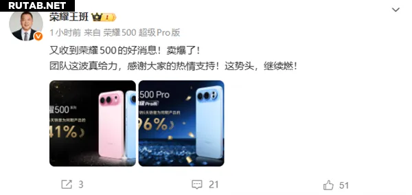 Глава отдела продаж и сервиса Honor Ван Бань сообщил, что за первые пять дней продаж по всем каналам сбыта было реализовано на 41% больше устройств линейки Honor 500 по сравнению с аналогичным периодом продаж модели Honor 300. Флагманская версия Honor 500 Pro показала еще более впечатляющий результат, превзойдя продажи Honor 300 Pro на 96%.