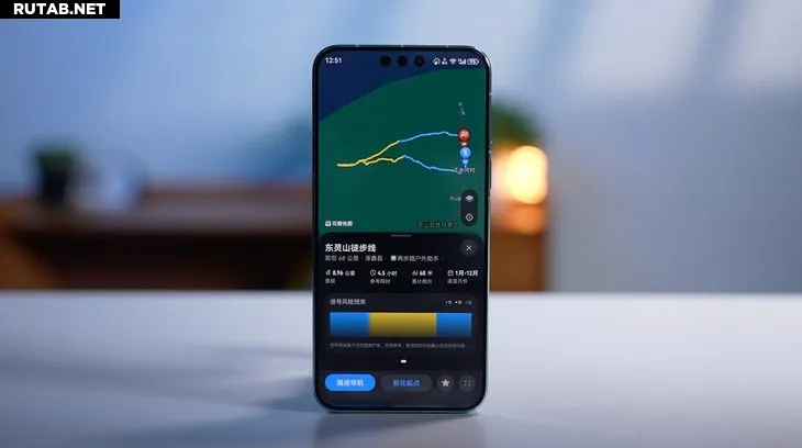 Например, при поиске маршрута для похода на гору Дунлиншань в Пекине отображается не только путь и расстояние, но и график набора высоты, а также зоны с риском потери сигнала (отмечены жёлтым).
