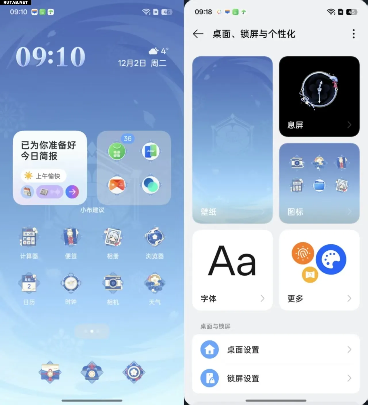 Системные кастомизации затрагивают все уровни: перерисованные иконки приложений в сине-золотой гамме, тематические звуки уведомлений и звонка, а также анимации включения, разблокировки и зарядки.