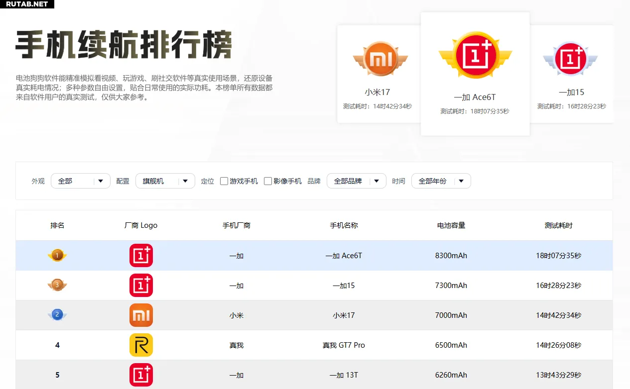 Рейтинг автономности смартфонов: OnePlus Ace 6T с огромной батареей возглавил список