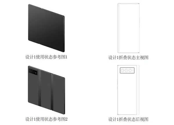 Несмотря на отсутствие планов по выпуску, у компании есть патенты на подобные устройства. Патент под номером CN308817132S описывает конструкцию с Z-образным сгибом, где экран складывается трижды. На задней панели расположена горизонтальная модульная камера, а в разложенном состоянии устройство по размеру сопоставимо с планшетом.