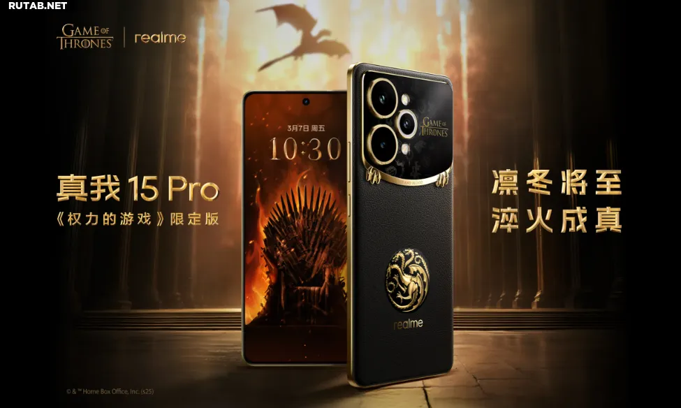 Компания Realme представила лимитированную версию смартфона Realme 15 Pro, созданную в сотрудничестве с франшизой «Игра престолов». Модель с памятью 12/512 ГБ поступила в продажу по цене 2499 юаней.