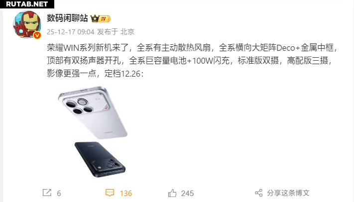 Компания Honor официально анонсировала новую игровую серию смартфонов WIN, презентация которой запланирована на 26 декабря.