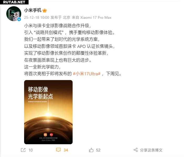Одновременно с этим Xiaomi Group и Leica Camera AG объявили о глобальном обновлении стратегического партнёрства в области создания изображений. После успешного этапа «совместных исследований и разработок» стороны вводят совершенно новый «стратегический совместный режим» (Strategic Co-creation Mode). Xiaomi 17 Ultra станет первым шедевром, созданным в рамках этого нового формата сотрудничества.