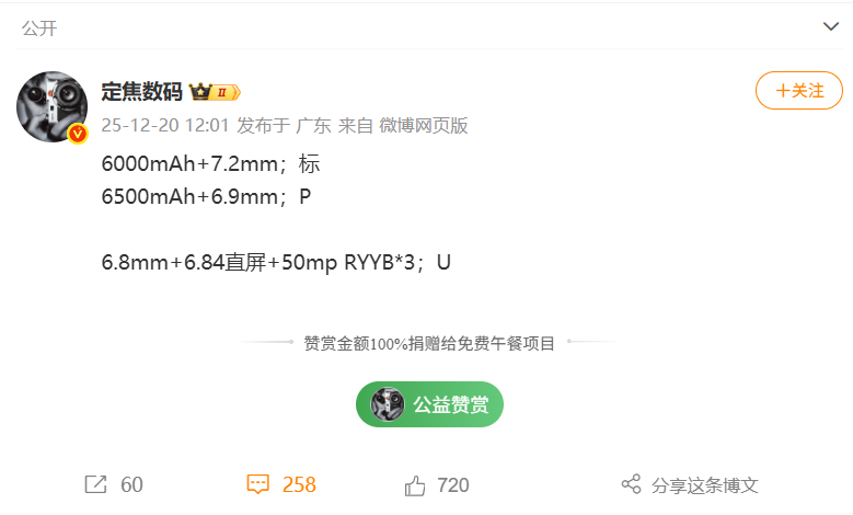 Ранее сообщалось, что в плане зарядки стандартная и Pro-версии получат аккумулятор на 6000 мАч с поддержкой проводной быстрой зарядки мощностью 100 Вт.