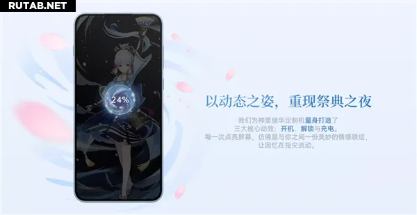Смартфон выполнен в уникальном цвете «Снежная синева» (雪霁蓝). На задней панели нанесён тематический узор с изображением Аяки, а стекло обработано таким образом, чтобы создавать переливы света, напоминающие её танец с мечом под луной.