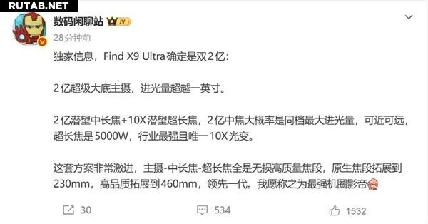 OPPO Find X9 Ultra станет первым смартфоном с двумя 200-мегапиксельными камерами