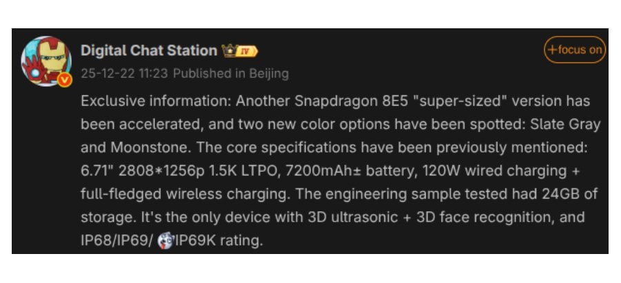Что касается автономности, сообщается, что компания будет использовать аккумуляторную батарею ёмкостью 7200 мАч. Варианты зарядки включают как проводную, так и беспроводную мощностью 120 Вт.