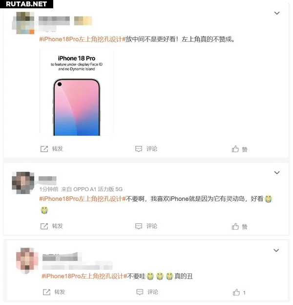 Тема «Дизайн с отверстием в левом верхнем углу для iPhone 18 Pro» стала популярной в китайских социальных сетях, вызвав оживлённые споры.