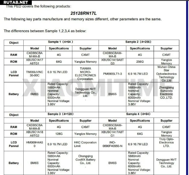 Одной из наиболее заметных деталей является аккумулятор. Сообщается, что Xiaomi оснастит эти телефоны батареей ёмкостью 6000 мАч. Однако зарядка останется скромной — 15 Вт через USB-C, а данные сертификации указывают, что зарядное устройство не будет входить в комплект поставки.