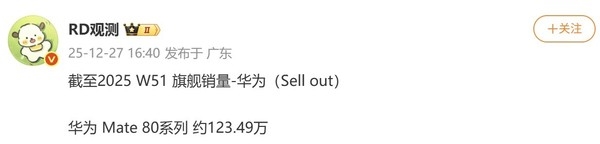 Успех Mate 80 способствовал общему росту продаж Huawei, позволив компании в течение двух недель подряд удерживать первое место по доле рынка смартфонов в Китае.